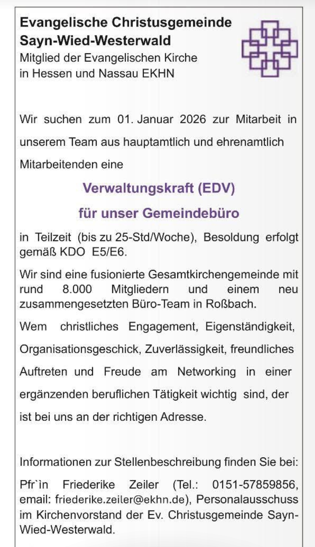 Die Ev. Christusgemeinde Sayn- Wied- Westerwald sucht