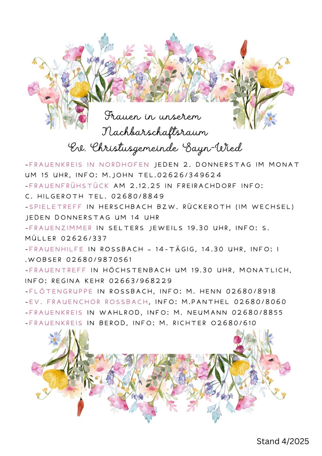 Am Gartenzaun des ev. Pfarrhauses (Saynstraße 19) oder digital